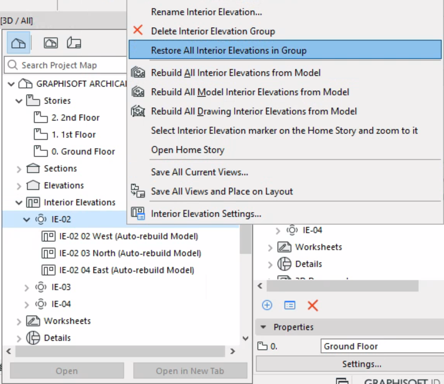 You can restore this viewpoint even after deleting it: In the Navigator or in the project, select the IE group to which it belongs, then use the Restore all Interior Elevations in Group command from the context menu.