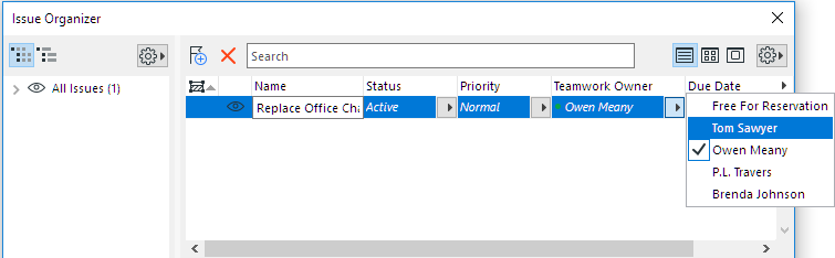 2.In the Issue item’s Teamwork Owner column, assign the Issue to User 2. (See Assign Issue to User.)