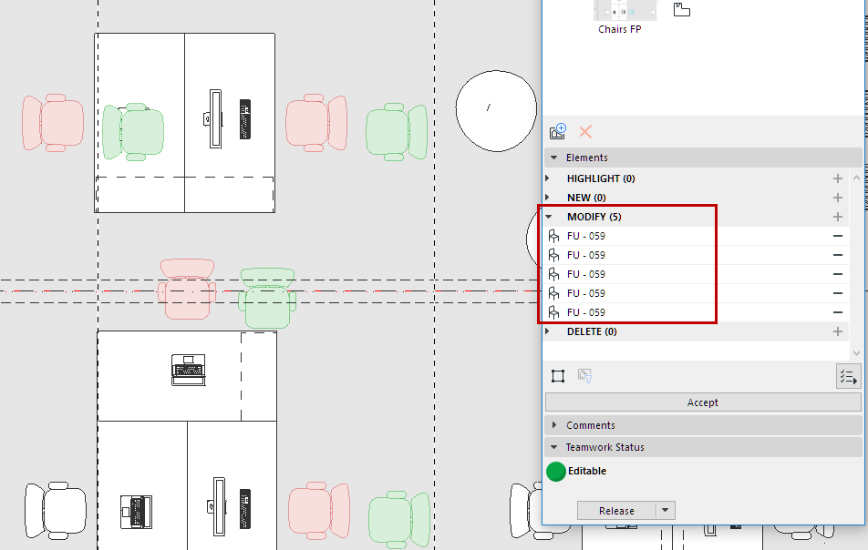 3.Select the elements in the model and move/change them to a more modern chair type.