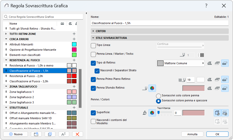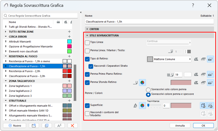 –nella parte inferiore della finestra di dialogo Regole Sovrascrittura Grafica