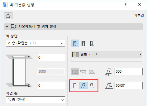옵션을 선택하여 벽의 기준선을 정의합니다.