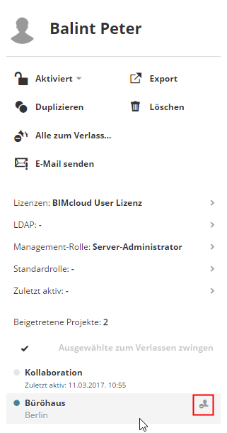 Siehe auch Nutzer zum Verlassen aller Projekte zwingen.