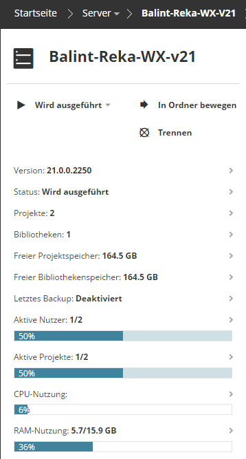 Anzahl der Projekte auf diesem Server und deren Größe |