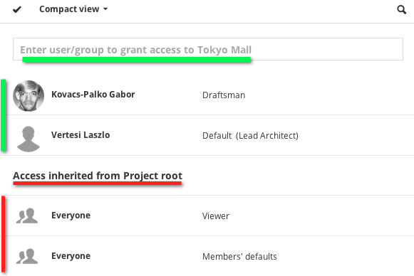 An important feature of the Access definition is its inheritance: Access granted at a higher level of the folder hierarchy is inherited downwards by all of its child elements.