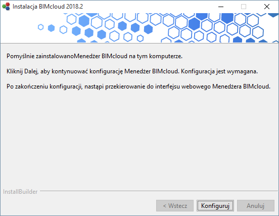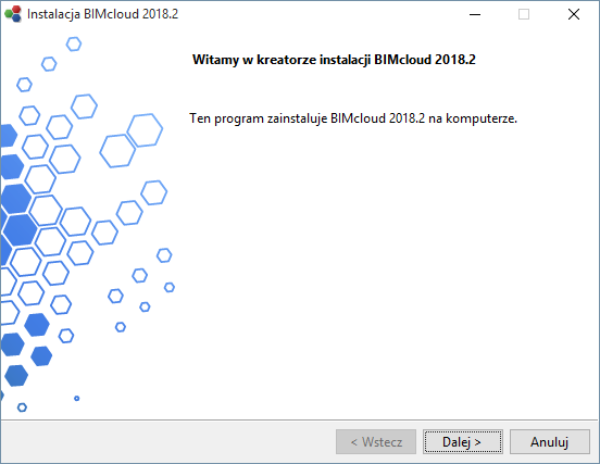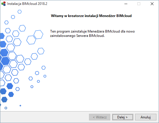 8.Wyświetlony zostanie ekran powitalny dla kolejnego procesu: Zainstaluj Menedżera BIMcloud.