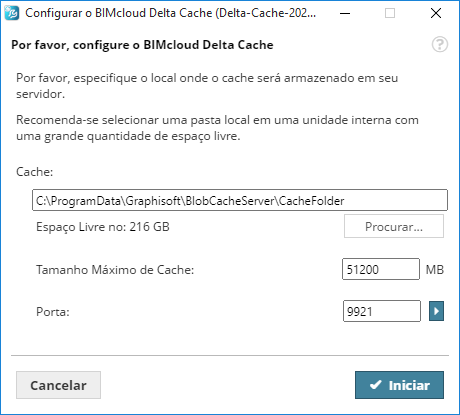 A configuração do BIMcloud Delta Cache ocorre depois de instalar um novo BIMcloud Delta Cache.