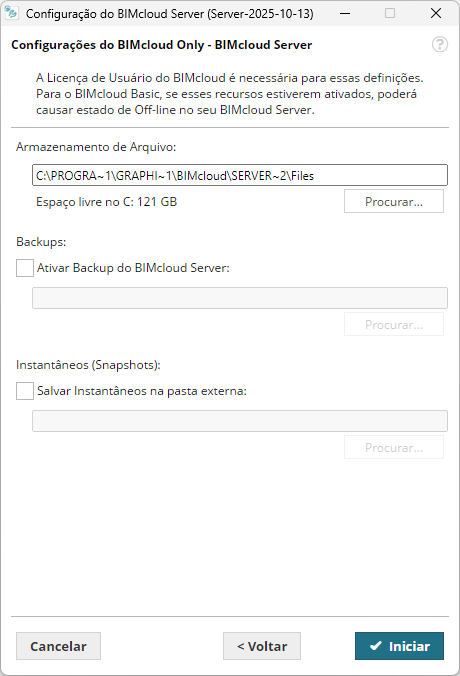 - Armazenamento de Arquivo: Os arquivos enviados para o BIMcloud Manager serão armazenados neste local.