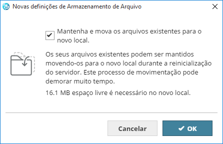 Marque esta opção para mover os arquivos existentes para a nova pasta que você acabou de definir.