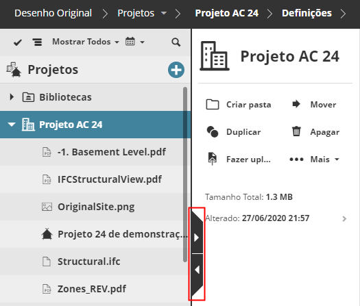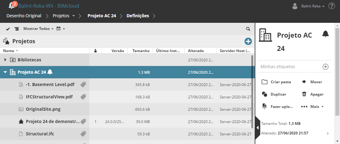 Na vista em Lista da página de Projetos do BIMcloud Manager: