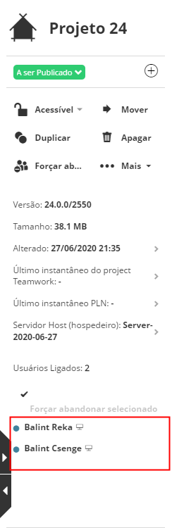 Para um Projeto selecionado (página de Projetos apenas): os usuários que se ligaram neste projeto.