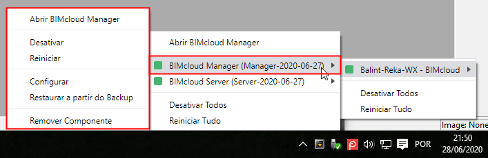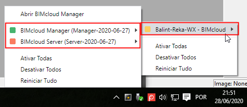 Acessar componentes BIMcloud a partir do ícone da bandeja