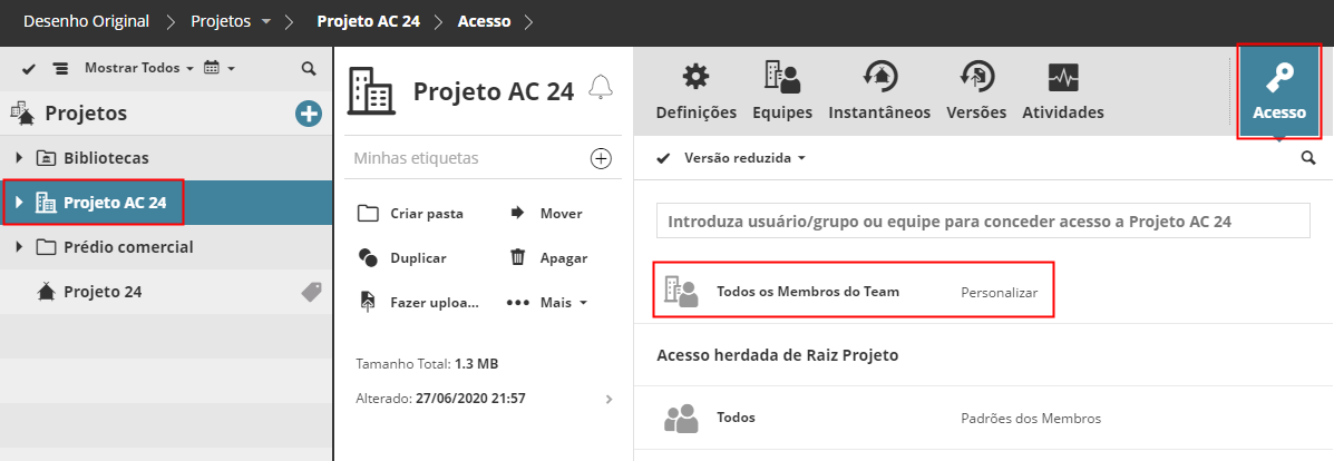 Definir permissões para equipes atribuídas a um projeto BIMcloud