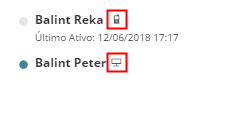 Os ícones ao lado de cada nome de usuário indicam o tipo de aplicativo no qual o usuário está trabalhando (p.ex. o Archicad ou o aplicativo móvel BIMx).