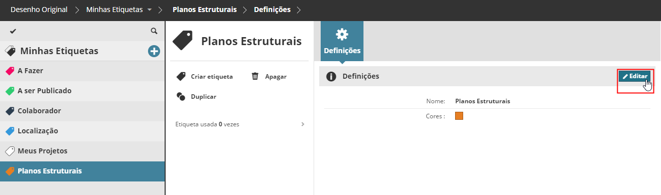 Selecione uma etiqueta para editar.