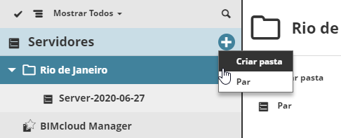 Na Página Servidores do BIMcloud Manager, clique em Criar Pasta e digite o nome da nova pasta na caixa de diálogo que aparece. Verifique se o nome da nova pasta é único dentro desta pasta.