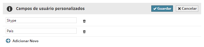 Crie campos opcionais para estarem disponíveis nas definições de todos os usuários, para inserir informações adicionais em todo o servidor. (P. ex.: Endereço Skype, ou o escritório onde o usuário está localizado.)