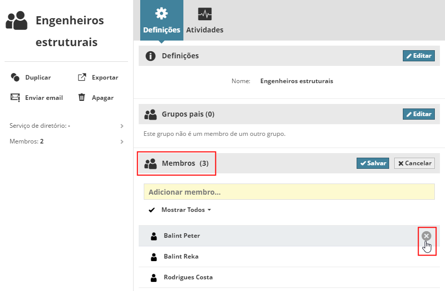 Na parte Membros das Definições do Grupo de Usuários: Clique em Editar.
