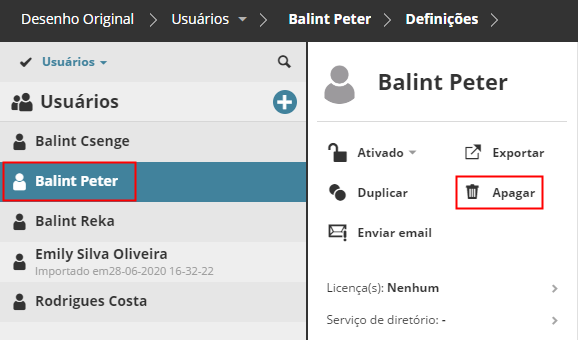 Apagar usuários ou grupos