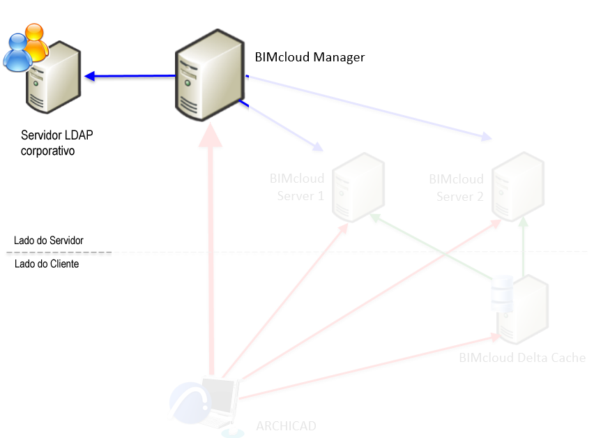 O BIMcloud integra o gestor de usuário com o diretório do usuário corporativo existente da empresa, utilizando o protocolo LDAP padronizado em todo o mundo.