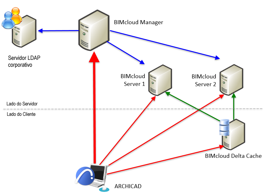 BIMcloud Delta Cache: Componente opcional que otimiza a transferência de dados entre os clientes Archicad e um BIMcloud Server