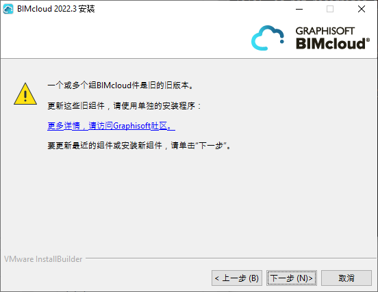 更新旧的BIMcloud组件 如何更新旧版本组件(版本早于 2020 版) 如果您现有的BIMcloud组件是旧的(遗留)版本,安装程序会提醒您,您不能直接从安装程序中更新它们。 但您可以通过两轮更新过程来完成。首先将组件更新为中间版本,然后将其更新为最新版本。 查看社区网站文章了解更多信息。 父主题: 更新组件至当前的BIMcloud中 相关信息 使用BIMcloud安装程序更新组件 如何验证BIMcloud组件