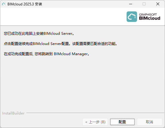 单击 配置。请按照此处描述的步骤进行操作: 配置BIMcloud Server