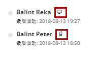 用户名称旁的图标表示用户正在使用的客户端应用类型(比如,Archicad或移动端BIMx应用)。