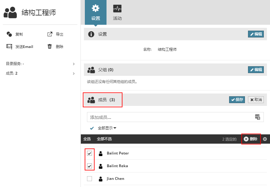 勾选每个需要删除的用户旁的方框(或者单击选择所有),然后单击删除。