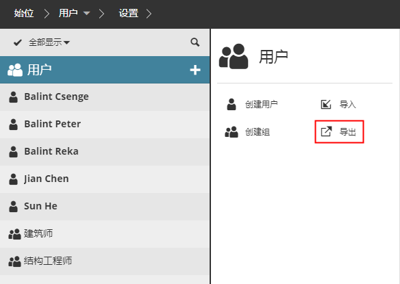 使用此功能将用户转移到不同的 BIMcloud,或作为备份