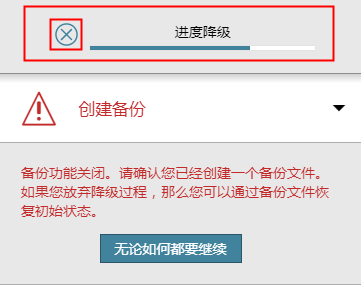 为结束降级过程, 请单击向导程序顶部过程栏中的 X 。