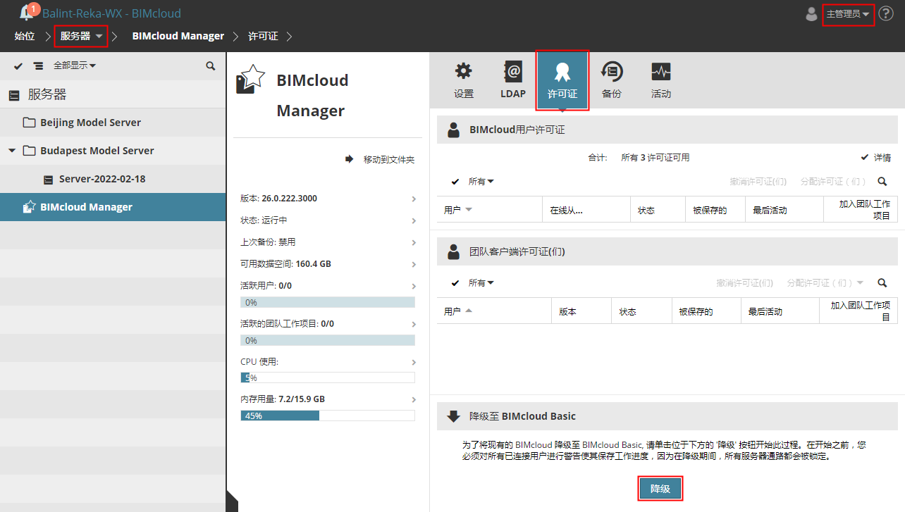 将BIMcloud降级为BIMcloud Basic
