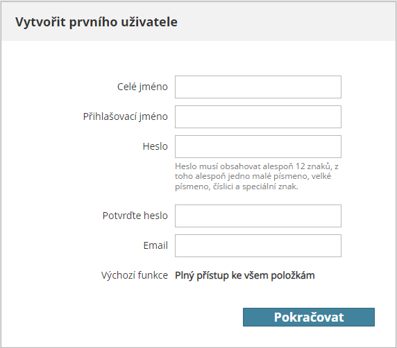 Nyní doporučujeme odhlásit hlavního administrátora a přihlásit se jako uživatel vytvořený v prvním kroku (výše). Nedoporučujeme používat účet hlavního administrátora pro každodenní úkoly.