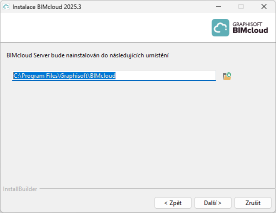 Vyberte umístění pro instalaci BIMcloud Managera.