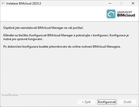 Klikněte na tlačítko Konfigurovat. Postupujte podle zde popsaných kroků: Konfigurace BIMcloud Managera