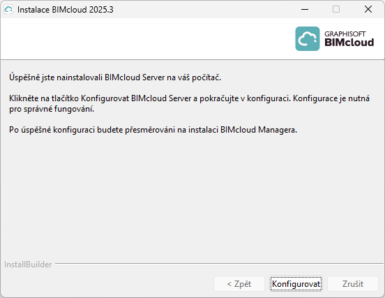 Klikněte na tlačítko Konfigurovat. Postupujte podle zde popsaných kroků: Konfigurace BIMcloud Serveru