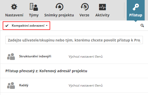 - V horní části seznamu se zobrazují uživatelé/skupiny, pokud jim byl udělen přístup k dané položce (správce přidal jejich jméno ručně - viz Udělení přístupu)