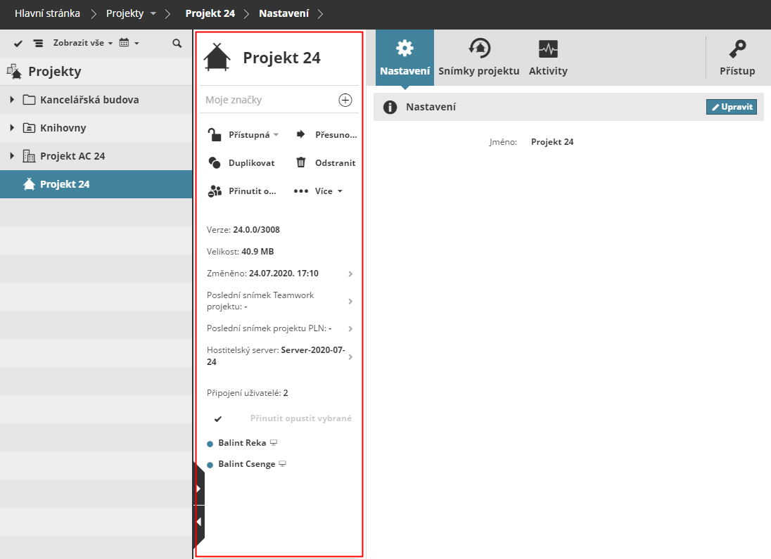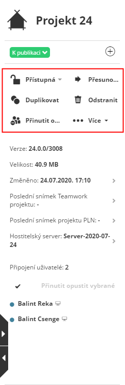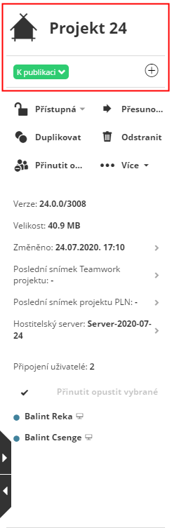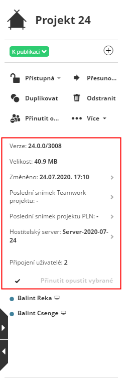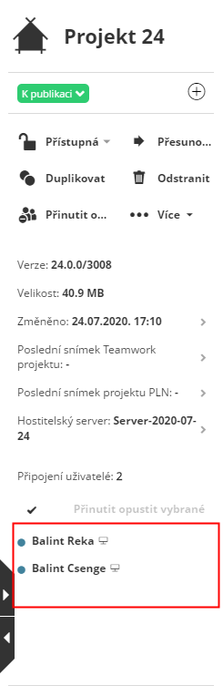 Pro vybraný projekt (pouze stránka Projekty): uživatelé, kteří jsou k projektu připojení.