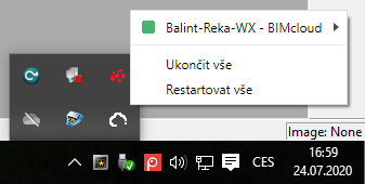 Přístup k BIMcloud komponentám z ikony v oznamovací oblasti