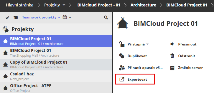 Stáhněte Teamwork projekt nebo knihovnu z BIMcloudu do počítače