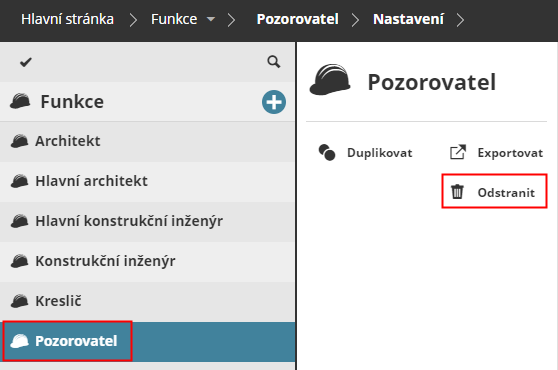 Odebrání jedné nebo více funkcí z BIMcloudu
