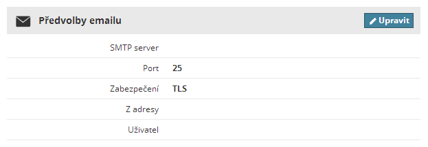 Slouží pro nastavení emailového serveru, který vám umožní posílat upozornění a zapomenutá hesla.