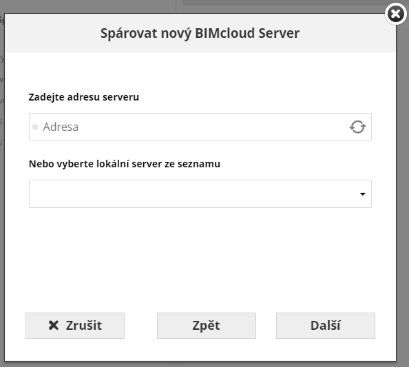 Zadejte URL adresu BIMcloud Serveru (včetně předpony http:// nebo https:// a čísla portu, např.: