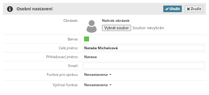 - Zadejte emailovou adresu uživatele. Můžete nahrát obrázek uživatele a nastavit mu barvu.