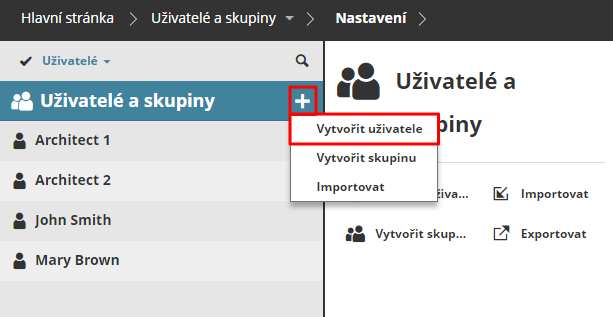 - V BIMcloud Manageru otevřete stránku Uživatelé a skupiny.