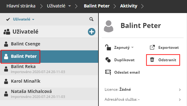 Vyberte jednoho nebo více uživatelů nebo skupin, které chcete odstranit. V následujícím okně odstranění potvrďte.