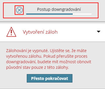 Pokud chcete proces downgradu ukončit, klikněte na X v liště postupu v horní části průvodce.