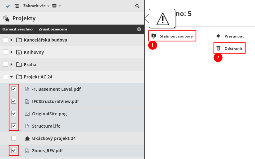 Poté příkazem Odstranit soubory z BIMcloud Managera odstraníte.