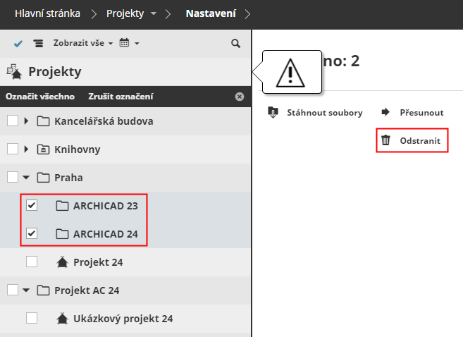 BIMcloud Basic podporuje ve složce projektů pouze jednu úroveň složek.