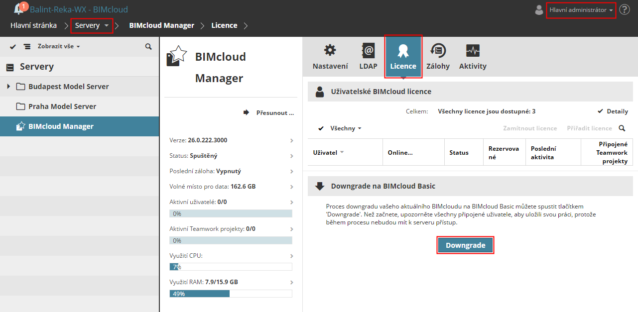Při downgradu vašeho BIMcloudu na BIMcloud Basic postupujte následovně: