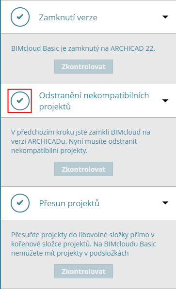 Krok 3: Odstranění nekompatibilních Teamwork projektů